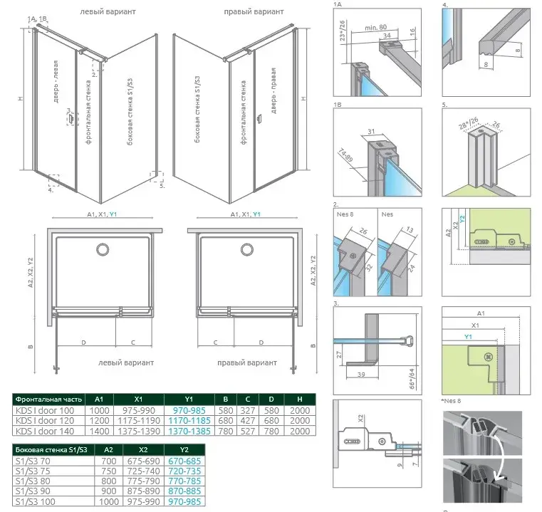 Radaway Nes S3 Боковая стенка, прозрачная 6 мм, Easy Clean 80х200h см, цвет: brushed gold 10043080-99-01