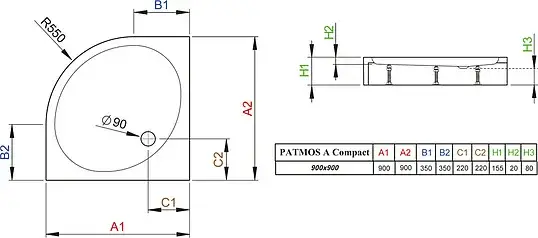 Radaway Patmos A Compact Душевой поддон из акрила, 90х90х16h см, цвет: белый глянцевый 4S99155-05