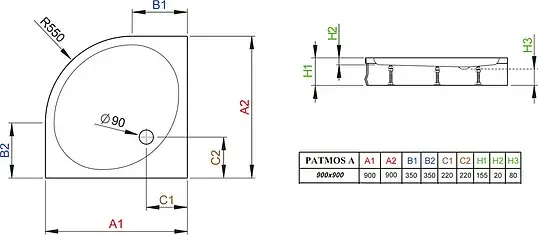 Radaway Patmos A Душевой поддон из акрила, 90х90х15h см, цвет: белый глянцевый 4S99155-03