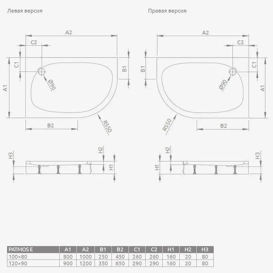 Radaway Patmos E Поддон для душа из акрила, 100х80х16h см, правый, цвет: белый глянцевый 4P81155-03R