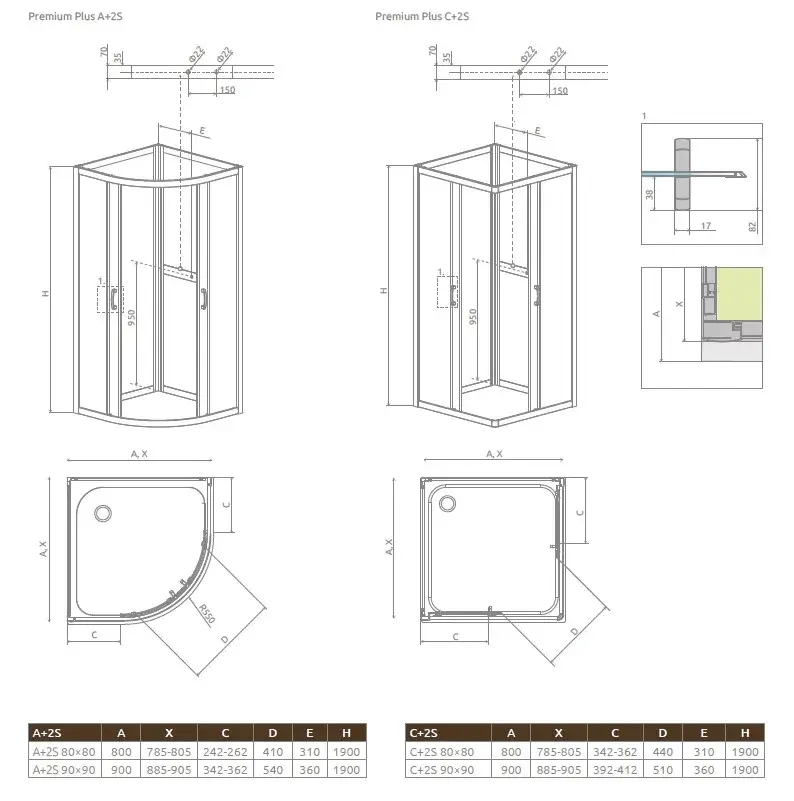 Radaway Premium Plus 2S Задняя стенка, прозрачная 5 мм, Easy Clean 80х190h см, цвет: хром глянцевый 33443-01-01N