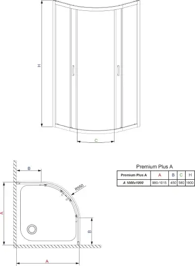 Radaway Premium Plus A Душевой уголок 100х190h см, универсальный, Easy Clean, цвет: хром глянцевый 30423-01-01N