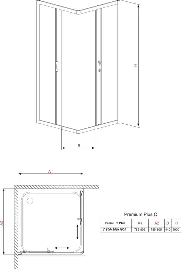 Radaway Premium Plus C Душевой уголок 80х190h см, универсальный, Easy Clean, цвет: хром глянцевый 30463-01-01N