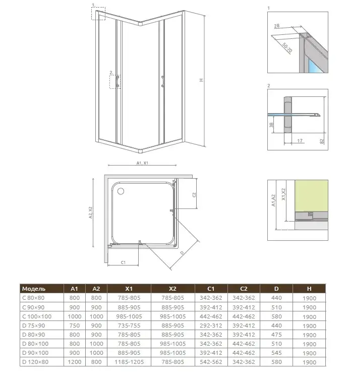 Radaway Premium Plus C Душевой уголок 80х190h см, универсальный, Easy Clean, цвет: хром глянцевый 30463-01-01N