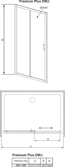 Radaway Premium Plus DWJ Душевая дверь в нишу, прозрачная 5 мм, 150х190h см, цвет: хром глянцевый 33343-01-01N