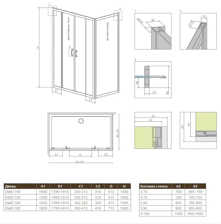 Radaway Premium Plus S Боковая стенка, прозрачная 5 мм, Easy Clean 90х190h см, цвет: хром глянцевый 33403-01-01N