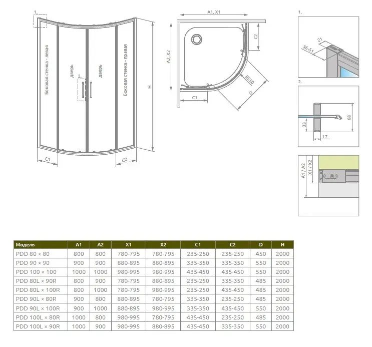 Radaway Premium Pro PDD Боковая стенка прозрачная 6 мм, Easy Clean 80;100х200h см, цвет: хром глянец 1013600-01-01