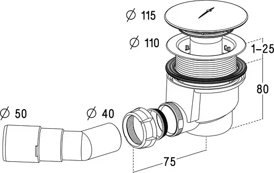 угол изгиба сливной трубы 135 градусов, крышка диаметром 115 мм