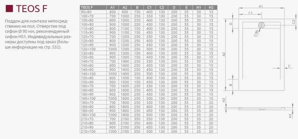 Radaway Teos F Поддон для душа из композита, 110х90х3h см с крышкой слива, цвет: white HTF11090-04