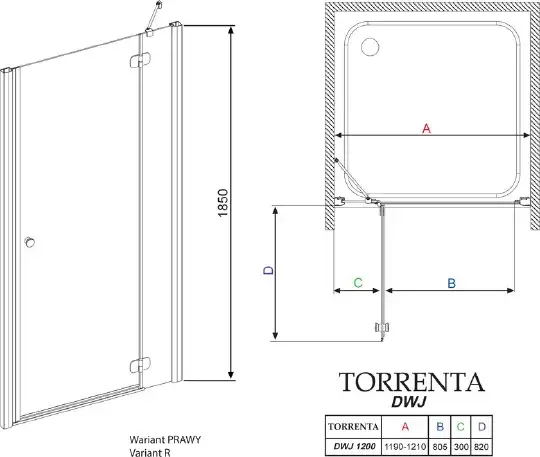 Radaway Torrenta DWJ 120R Душевая дверь в нишу правая 121x185h см, цвет: хром 32030-01-01N