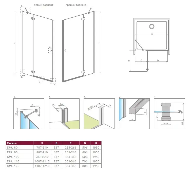 Radaway Torrenta DWJ Душевая дверь в нишу, левая 6 мм, Easy Clean 110х195h см, цвет: хром глянец 131940-01-01