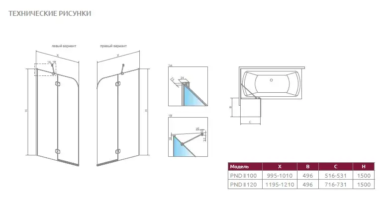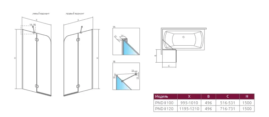 Radaway Torrenta PND II Шторка на ванну распашная 6 мм, Easy Clean 100х150h см, цвет: хром глянец 12011202-101R