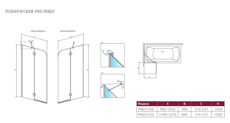 Radaway Torrenta PND II Шторка на ванну распашная, прозрачная, 100х150h см, цвет: хром глянцевый 12011202-101L