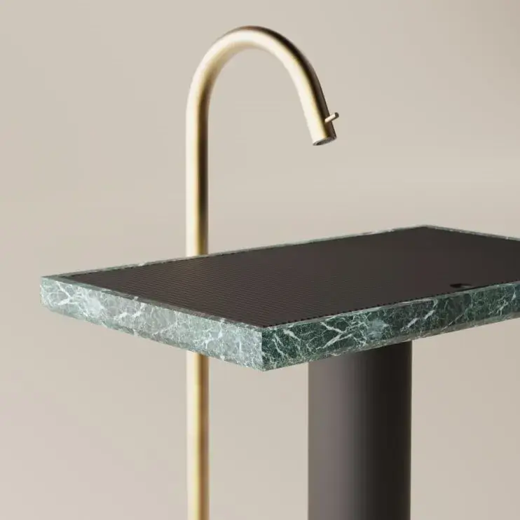 Раковина Agape ELL A COLONNA ACER0996.VP+ACER0997F.E+.MET0475S мрамор VERDE ALPI/сталь черная