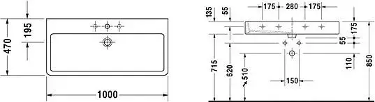 Раковина Duravit Vero 100 см 0454100000