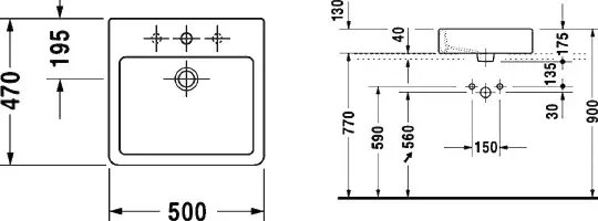 Duravit Vero Раковина для мебели с перел., с 1 отв. под смес., 85х49см., цвет: белый