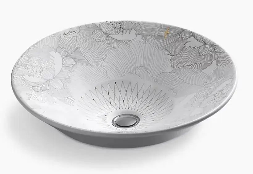 Раковина KOHLER EMPRESS BOUQUET K-14223-SMC-0 цветочная графика на белом фоне