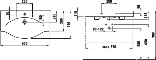 Laufen Palace Раковина консоль подвесная/накладная 90х51х11см, с 1 отв. под смеситель, цвет: белый