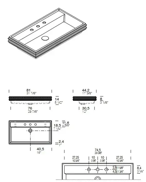 Раковина Milldue Zurigo 81 9226 ceramilux bianco glossy - j17, polished steel