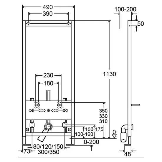Рама монтажная для биде eco plus, 49*10-20*h113