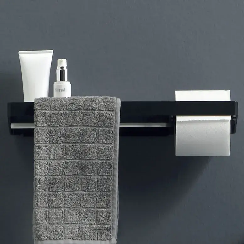 Рейлинг для аксессуаров с полотенцедержателем и держателем туалетной бумаги DX 41*13*2.5h черный матовый