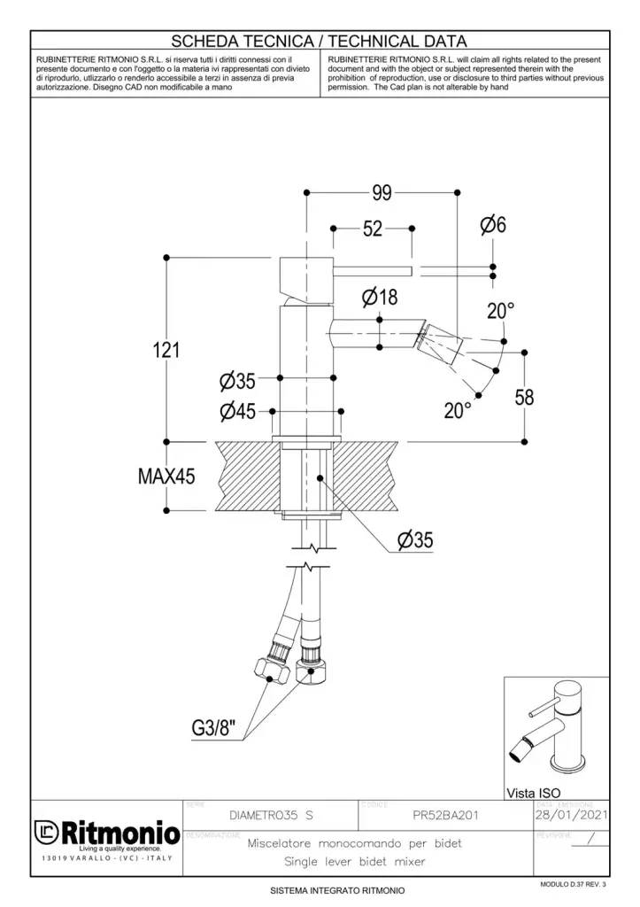 Ritmonio Diametro35 S Смеситель для биде без д/к, излив 9,9 см, цвет: blx brushed black chrome PR52BA201BLX