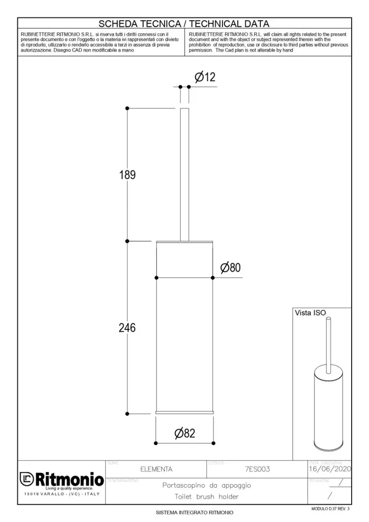 Ritmonio Elementa Дозатор для мыла, встраиваемый, с латунной колбой, цвет: crl chrome 7GS004CRL