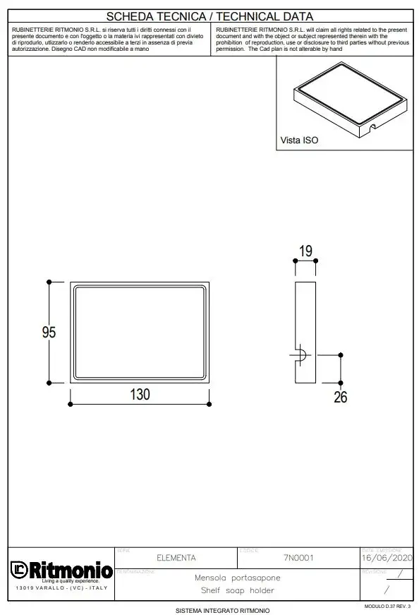 Ritmonio Elementa Дозатор для мыла, встраиваемый, с латунной колбой, цвет: crl chrome 7GS004CRL