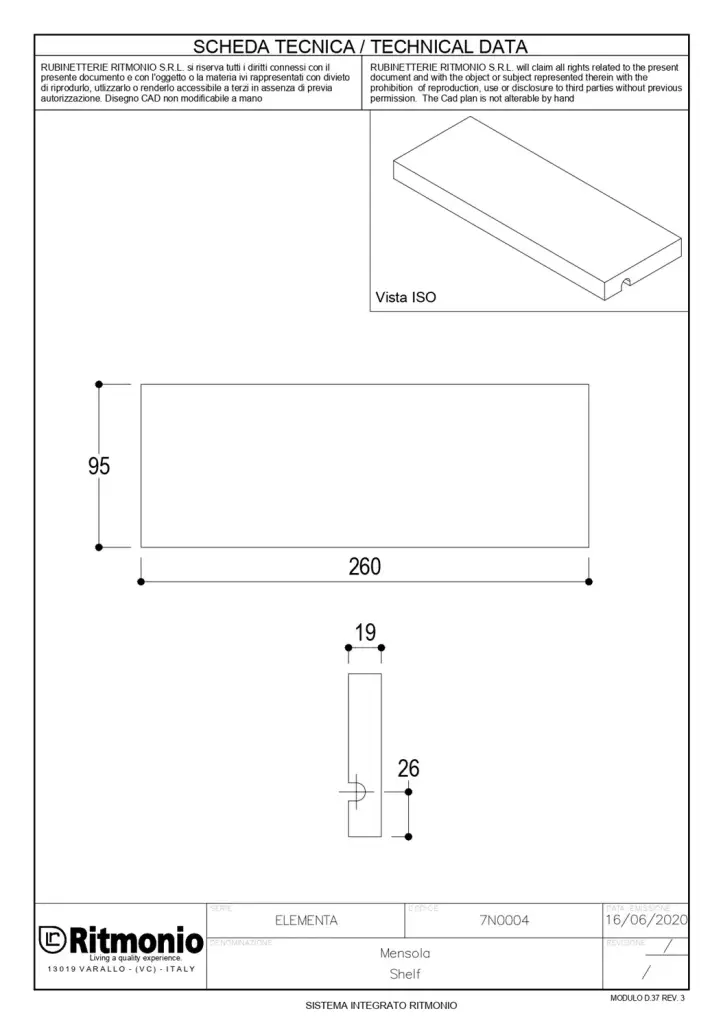 Ritmonio Elementa Полка на рейлинг 26x9,5 см, цвет: white acrylic stone 7N0004F38