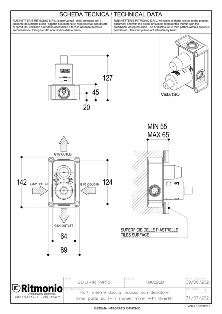 Ritmonio Встраиваемая часть однорычажного смесителя для ванны/душа, на 2 потребителя PM0020M