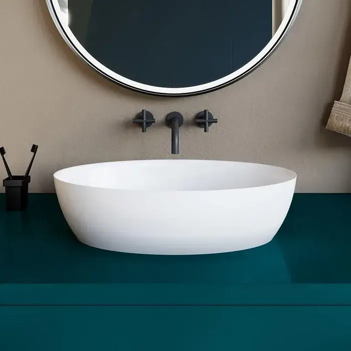 Salini Alda Раковина накладная 58х35х15cм, без отв., без перелива, S-Stone, цвет: белый матовый