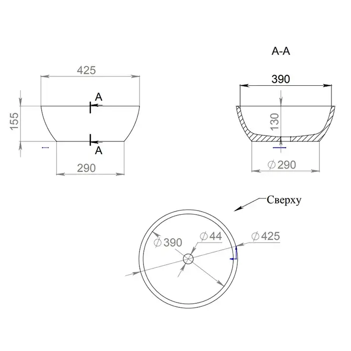 Salini Alda 02 Раковина 42.5х42.5х15.5см., накладная, без отв., S-Sense, цвет: белый