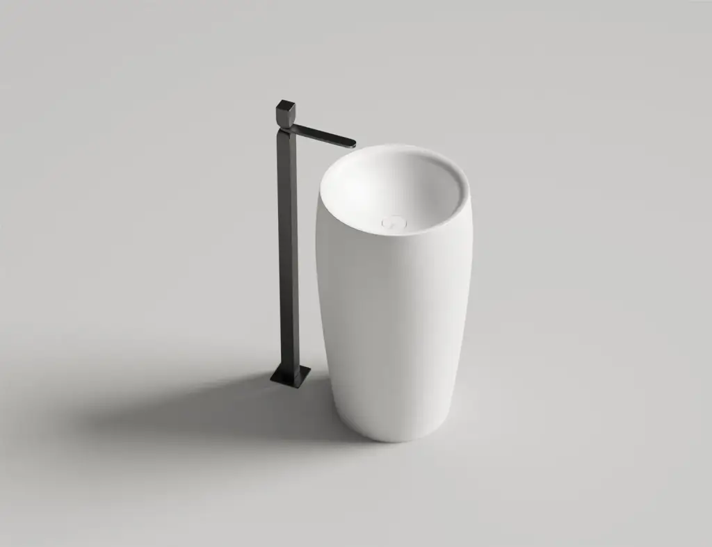 Salini Armonia 203 Раковина напольная 47х47х90cм., без отв., без перелива, донный клапан "Up&Down", материал: S-Stone, цвет: белый матовый