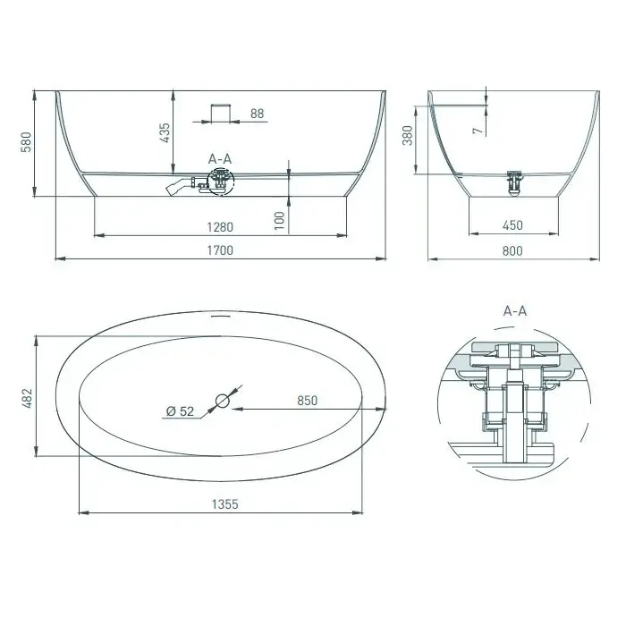 Salini Alda Ванна из S-Sense отдельностоящая 170x80 см, цвет: белый глянцевый 101912G