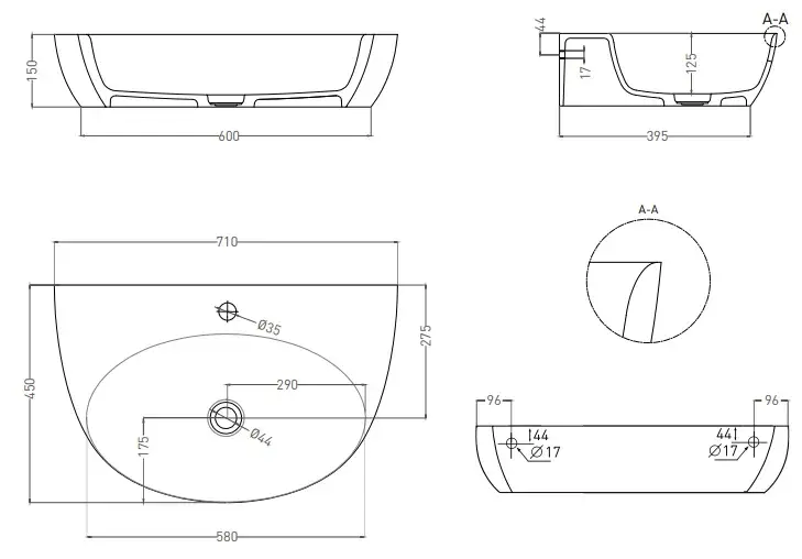 Salini Alda Wall 03 Раковина подвесная округлая 71x45x15h см, цвет: белый матовый 140323M