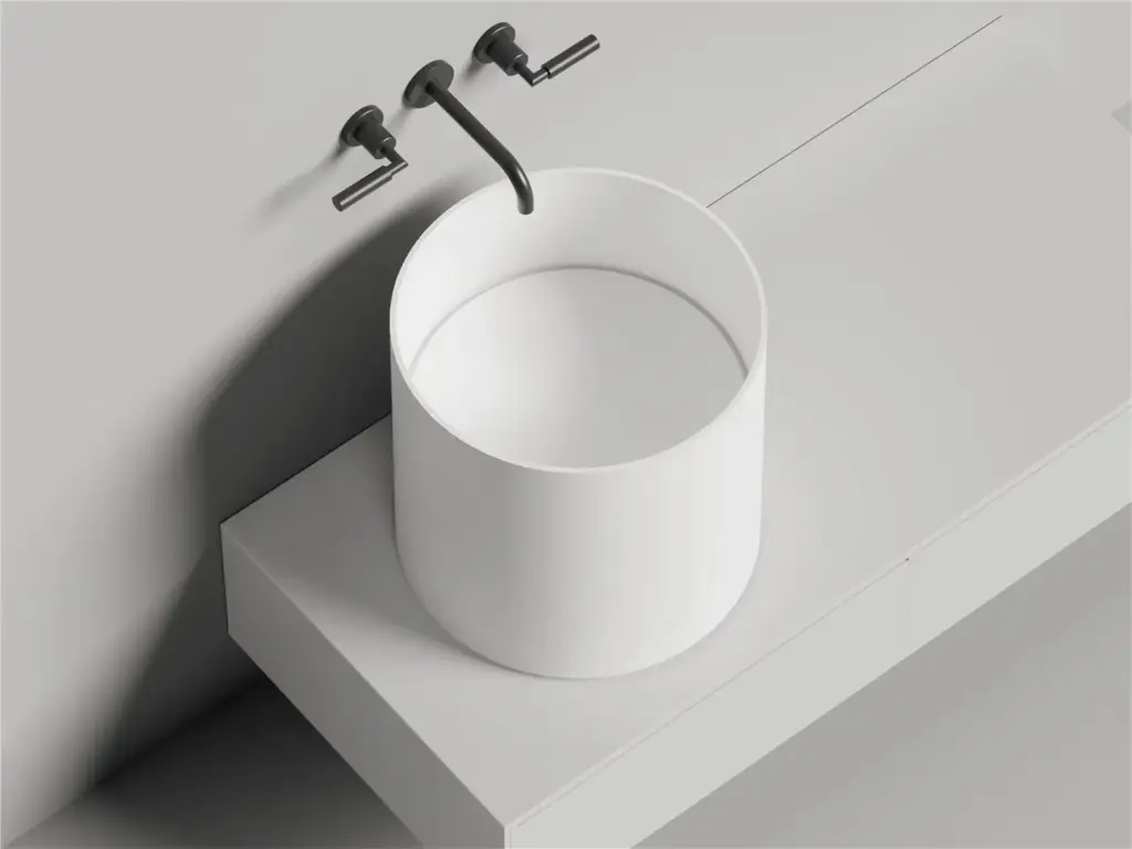 Salini Armonia Round Top 01 Раковина напольная 45х45х90см., слив в стену, без отв. под смес, с декор.накладкой, мат-л: S-Sense, цвет: белый глянцевый