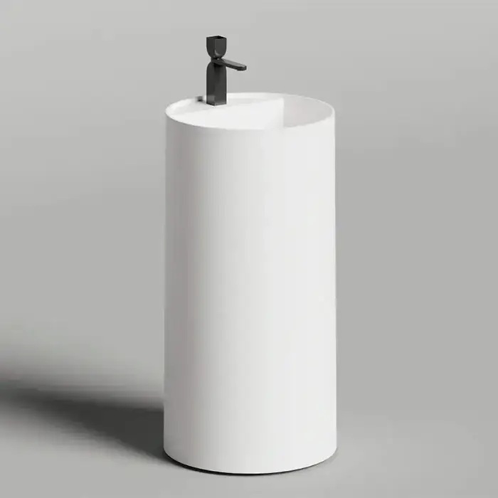Salini Armonia Round Top 01 Раковина напольная 45х45х90см., слив в стену, с 1 отв., с декор.накладкой, мат-л: S-Sense, цвет: белый глянцевый