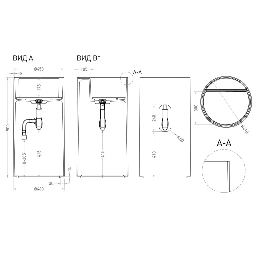 Salini Armonia Round Top 01 Раковина напольная 45х45х90см., слив в стену, без отв. под смес, с декор.накладкой, мат-л: S-Sense, цвет: белый глянцевый