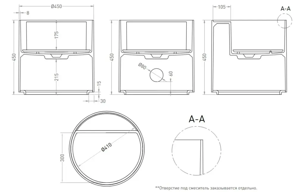 отверстие под смеситель на выбор