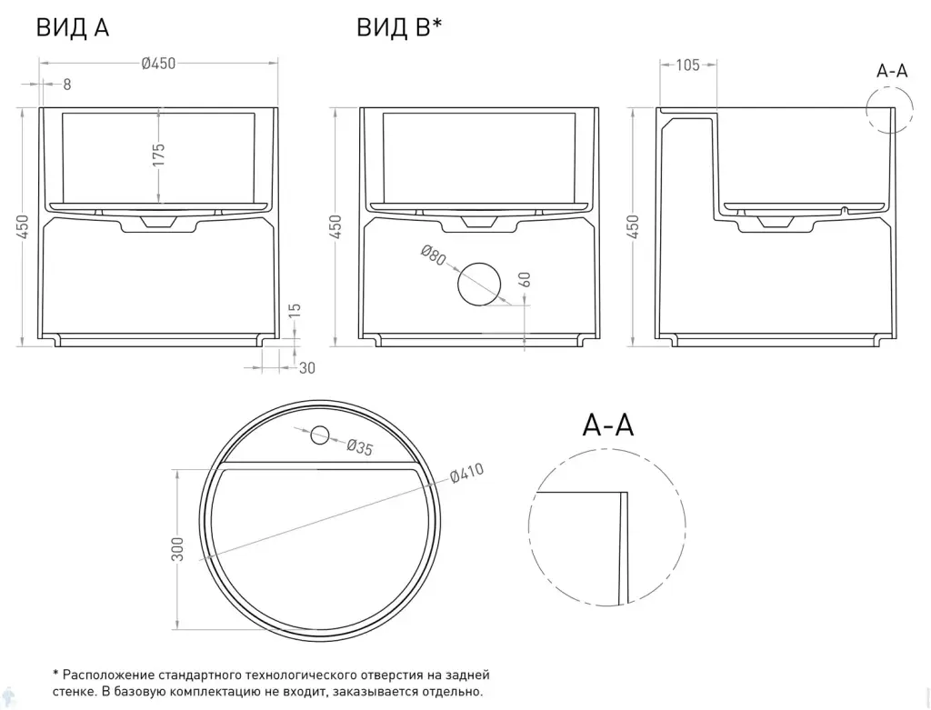 Salini Armonia Round 01 Раковина напольная 45х45х90см, слив в пол, без отв. под смес, с декор.накладкой, мат-л: S-Sense, цвет: белый глянцевый