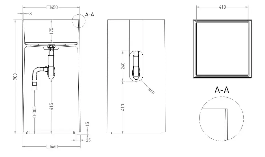 Salini Armonia Square Top Раковина напольная 45х45х90см, без отв. под смеситель, слив в стену, выпуск D 503, сифон, мат-л: S-Sence, цвет: белый глянцевый