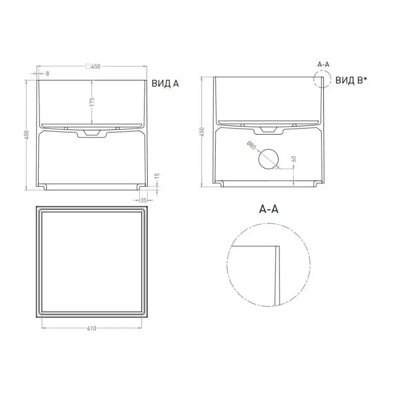 Salini Armonia Square Top Раковина напольная 45х45х90см, без отв. под смеситель, слив в стену, выпуск D 503, сифон, мат-л: S-Sence, цвет: белый глянцевый