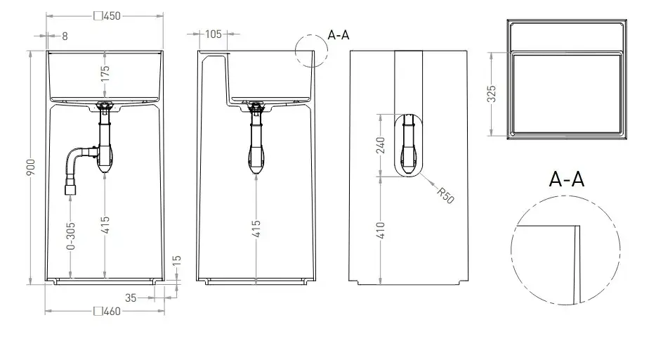 Раковина напольная без отверстия под смеситель, Выпуск для раковины d 503, Сифон, Декоративная накла
