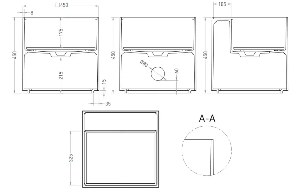 Salini Armonia Square Top 03 Раковина чаша 45х45х45h см, без перелива, цвет: белый глянцевый 130513TG