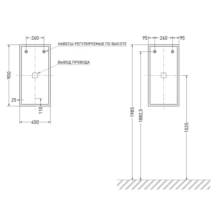 SALINI Зеркало для ванны ARMONIA 450×900х25мм., фоновая и фронтальная подсветка 3в1 , сенсор движения включения подсветки , крепления, без подогрева