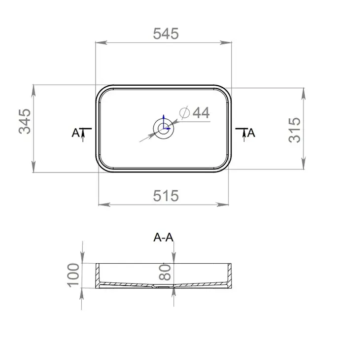 Salini MAREA 12 Раковина врезная снизу 545х375х187мм, без отв. под смес, с ПЕРЕЛИВОМ, материал: S-Sense, глянцевый, белый.