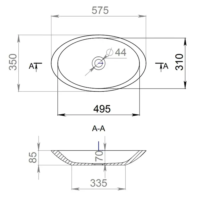 Salini NOEMI Раковина накладная 56х34х15см, без отв., без перелива, материал: S-Stone, цвет: RAL9011 матовый
