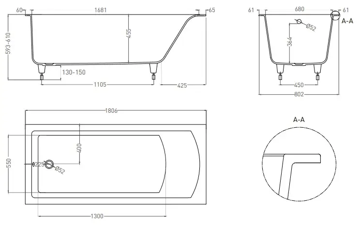 Salini Cascata Kit Ванна из S-Sense встраиваемая 180,6x80,2 см, цвет: белый матовый 104513M