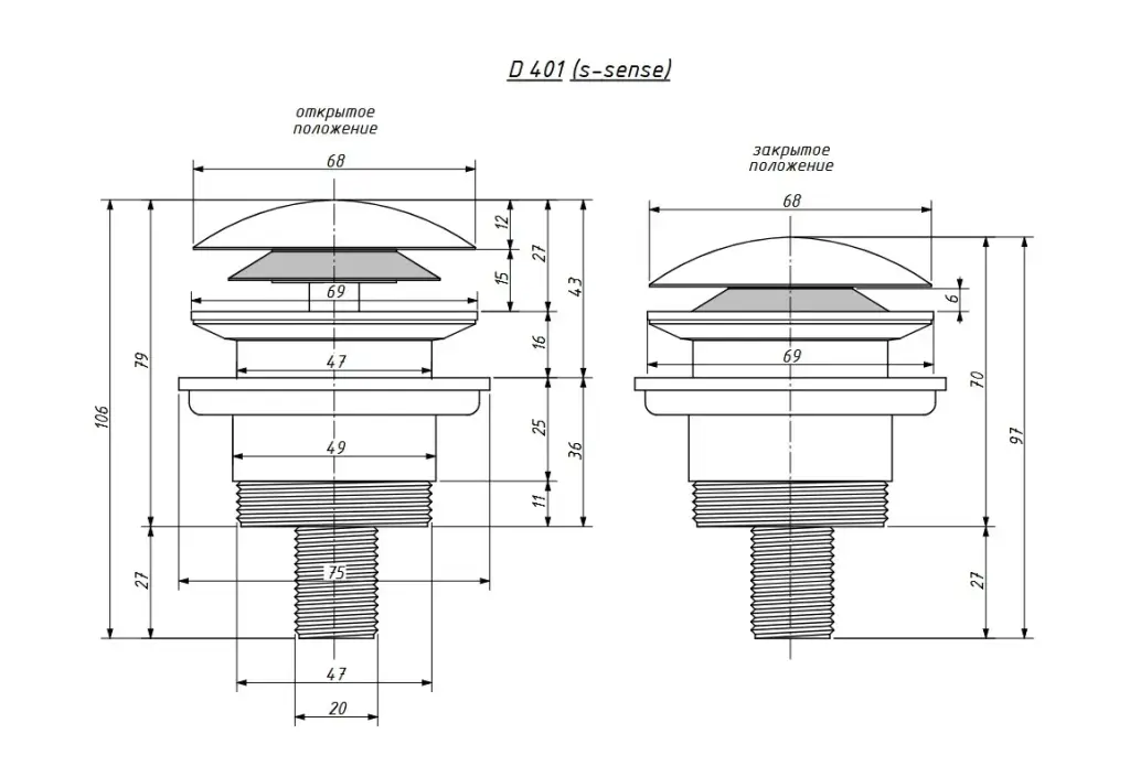 Salini D 401 Донный клапан для ванны из S-Sense, Click-Clack цвет: белый матовый 151201M