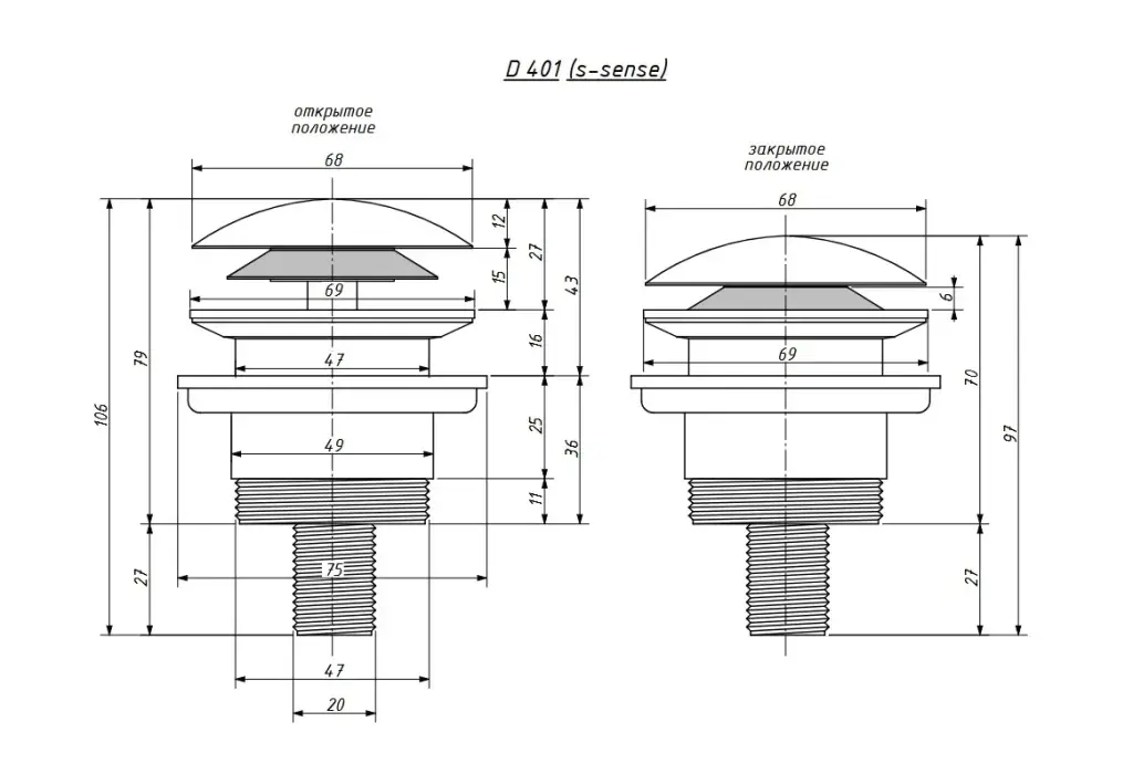 Salini D 401 Донный клапан для ванны из S-Stone, Click-Clack цвет: белый матовый 151301M